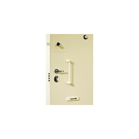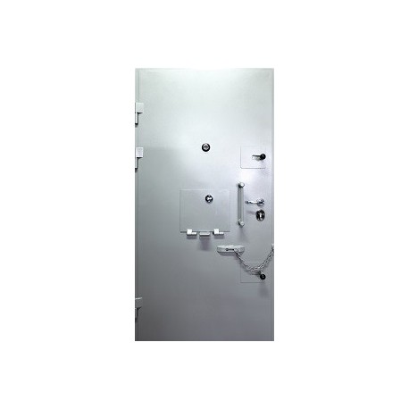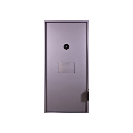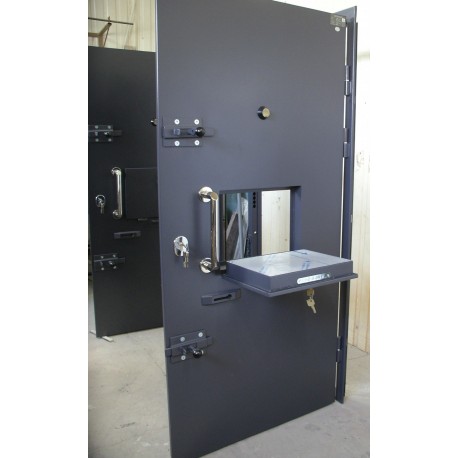 Zgodnie z wymogami drzwi posiadają wizjer stożkowy (wysokość 1,5 m), zabezpieczony od strony celi szkłem hartowanym, z drugiej strony ruchomą zasłoną.