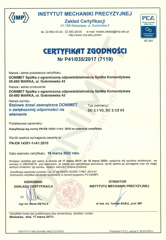 Drzwi antywłamaniowe zewnętrzne DONIMET DC3.1/2