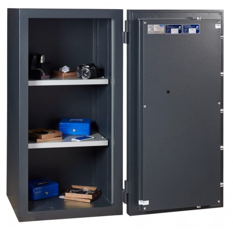 • Zamki – standardowo sejfy posiada atestowany zamek kluczowy lub elektroniczny. Opcjonalnie można również zainstalować zamek szyfrowy mechaniczny. Poziom fizycznego zabezpieczenia może być wymiernie zwiększony poprzez możliwość zainstalowania drugiego zamka, dowolnie wybranego spośród wyżej wymienionych.