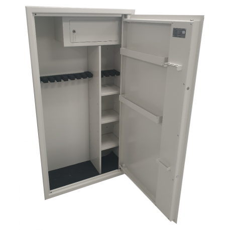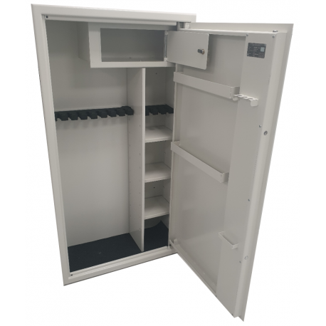 Szeroka oferta modeli pozwala na optymalne dopasowanie szafy do rodzaju i ilości przechowywanej broni. Nieodzowne wyposażenie magazynu broni oraz myśliwego. Wykonane w klasie S1 wg PN-EN 14450:2006. Testowane i certyfikowane przez IMP.