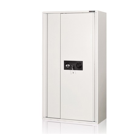 - Wyposażone w zamek kluczowy kl. B wg EN 1300 z dwoma kluczami oraz zamek mechaniczny szyfrowy kl. B wg EN 1300, trzytarczowy o cichym przesuwie posiadajcy minimum 100 podziałek na pokrętle. Skala nastawień przy której w przypadku każdej tarczy zamek nie otworzy się jeżeli pokrętło przekręcone jest więcej niż o jedną kreskę podziałki po obu stronach właściwej kreski podziałki. Możliwa zmiana kombinacji przy użyciu klucza od tyłu obudowy zamka. Zamek jest zabezpieczony przed działaniem destrukcyjnym w tym przed przewierceniem oraz atakiem radiologicznym.