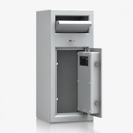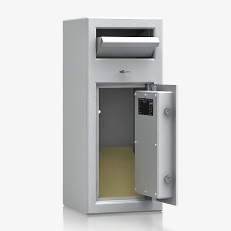 Model z wrzutnią, otwieraną do dołu z blachą odprowadzającą. Wrzutnia zamykana certyfikowanym zamkiem kluczowym. Model polecany do przechowywania dokumentów i rzeczy wartościowych.