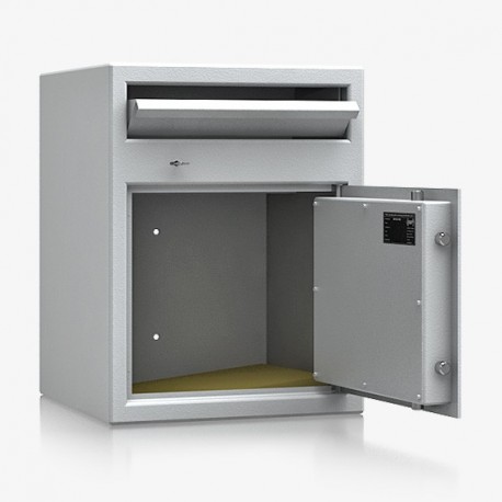 Model z wrzutnią, otwieraną do dołu z blachą odprowadzającą. Wrzutnia zamykana certyfikowanym zamkiem kluczowym. Model polecany do przechowywania dokumentów i rzeczy wartościowych.