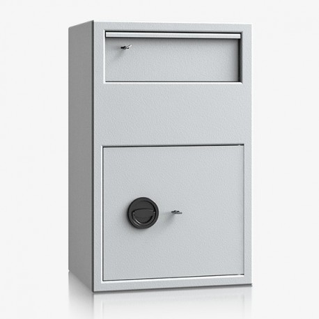 Model z wrzutnią z przodu sejfu, otwieraną do dołu z blachą odprowadzającą. Wrzutnia zamykana certyfikowanym zamkiem kluczowym. Model polecany do przechowywania dokumentów i rzeczy wartościowych.