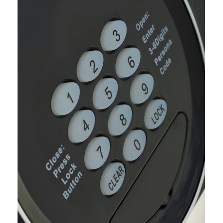 Trzy kolejne próby wpisania błędnego kodu sprawią, iż zamek przejdzie w tryb uśpienia na 5 minut. By zamknąć sejf wystarczy zamknąć drzwi i przekręcić pokrętło zamka.