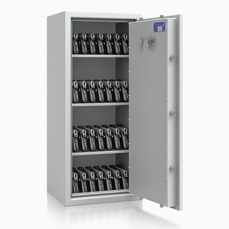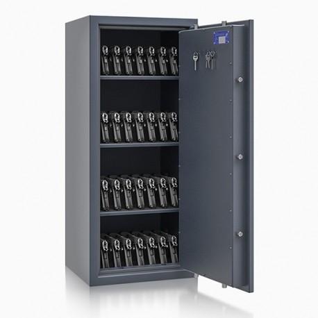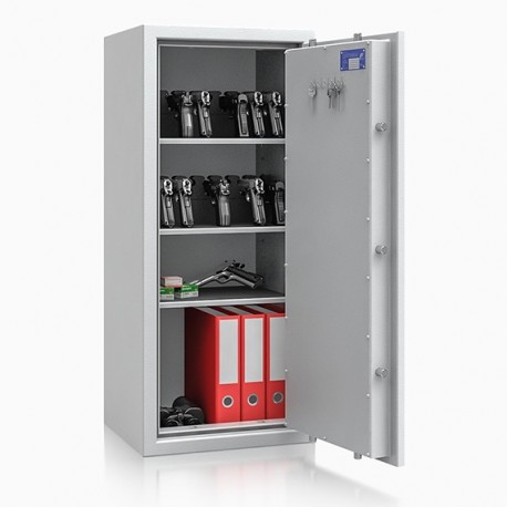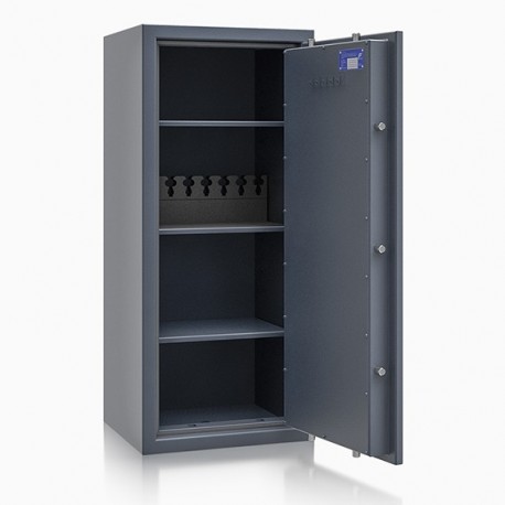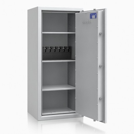 Przestawne półki umożliwiają samodzielne konfigurowanie wnętrza sejfu, który dzięki I klasie odporności na włamanie może być przeznaczony również do przechowywania rzeczy wartościowych.