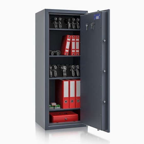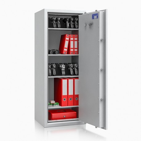 Przestawne półki umożliwiają samodzielne konfigurowanie wnętrza sejfu, który dzięki I klasie odporności na włamanie może być przeznaczony również do przechowywania rzeczy wartościowych.