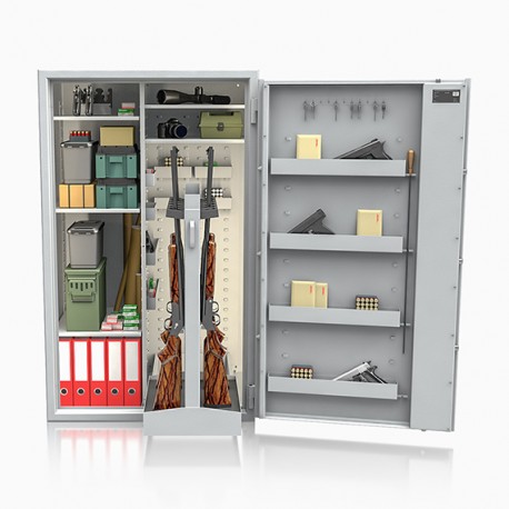 Poprzez możliwość przestawiania na wysokości półek jak i uchwytów na broń – można dowolnie spersonalizować wnętrze umożliwiając dogodne ustawienie broni o różnej wysokości.