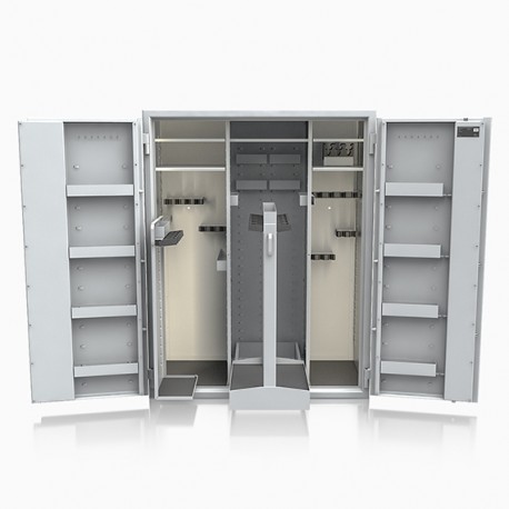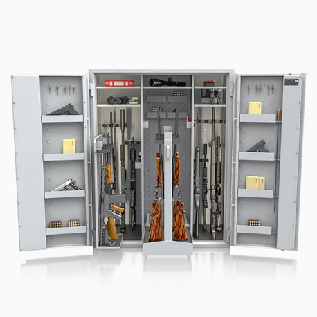 Poprzez możliwość przestawiania na wysokości półek jak i uchwytów na broń – można dowolnie spersonalizować wnętrze umożliwiając dogodne ustawienie broni o różnej wysokości.