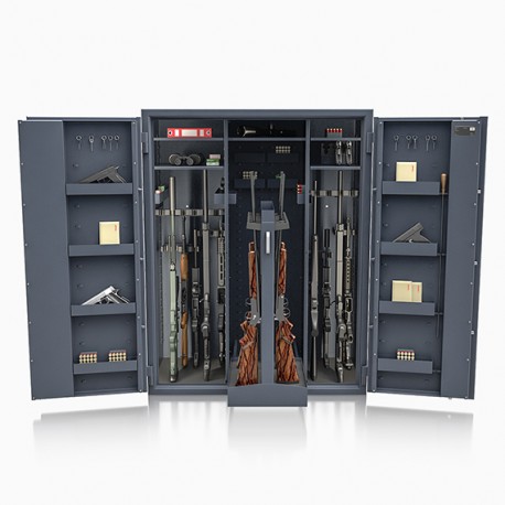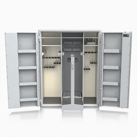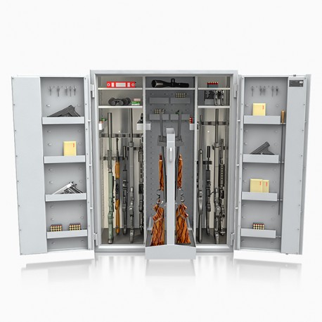 Poprzez możliwość przestawiania na wysokości półek jak i uchwytów na broń – można dowolnie spersonalizować wnętrze umożliwiając dogodne ustawienie broni o różnej wysokości.