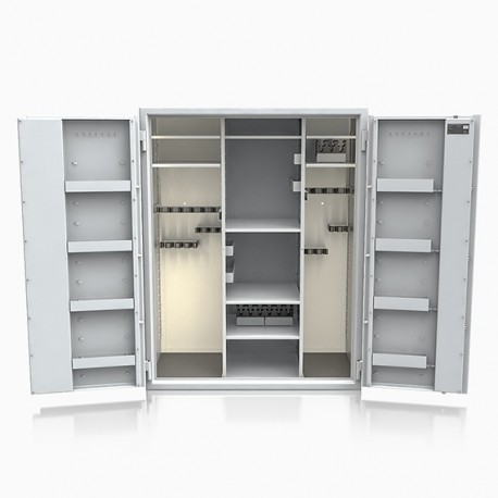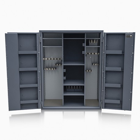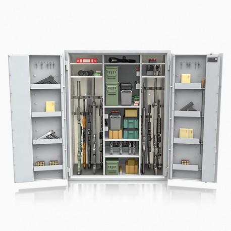 Poprzez możliwość przestawiania na wysokości półek jak i uchwytów na broń – można dowolnie spersonalizować wnętrze umożliwiając dogodne ustawienie broni o różnej wysokości.