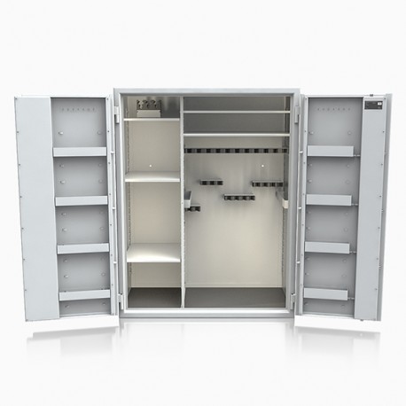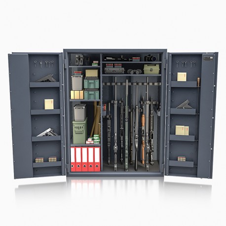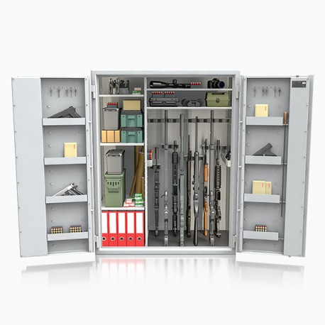 Poprzez możliwość przestawiania na wysokości półek jak i uchwytów na broń – można dowolnie spersonalizować wnętrze umożliwiając dogodne ustawienie broni o różnej wysokości.