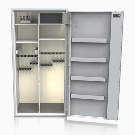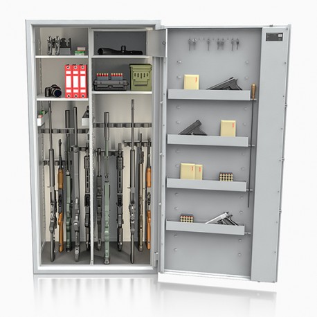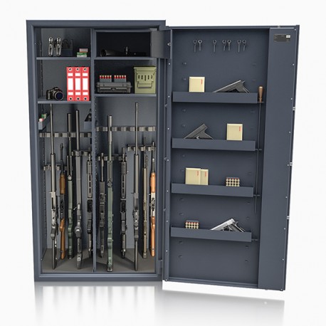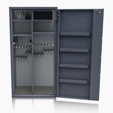 Poprzez możliwość przestawiania na wysokości półek jak i uchwytów na broń – można dowolnie spersonalizować wnętrze umożliwiając dogodne ustawienie broni o różnej wysokości.