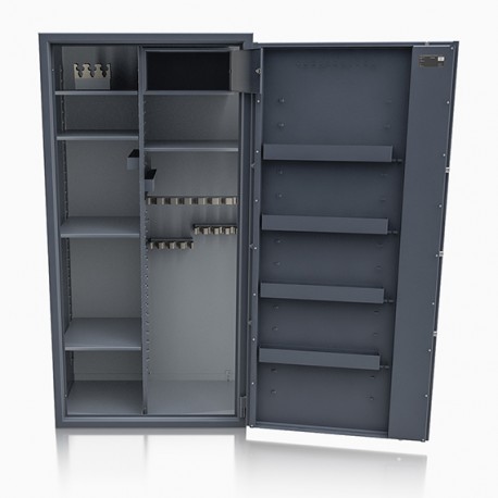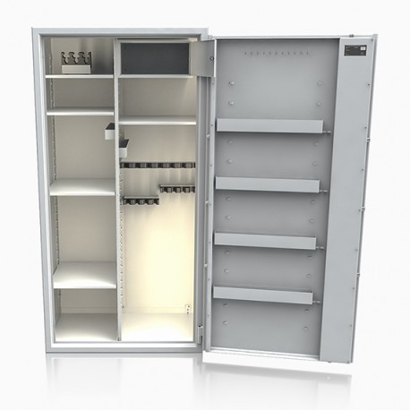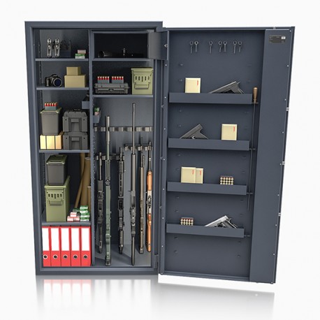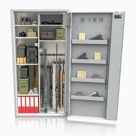 Poprzez możliwość przestawiania na wysokości półek jak i uchwytów na broń – można dowolnie spersonalizować wnętrze umożliwiając dogodne ustawienie broni o różnej wysokości.