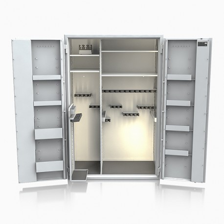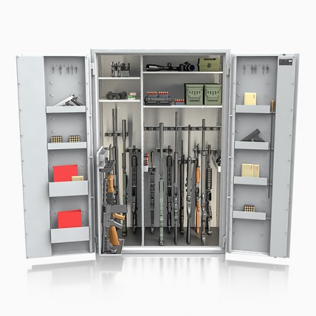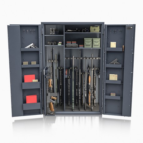 Poprzez możliwość przestawiania na wysokości półek jak i uchwytów na broń – można dowolnie spersonalizować wnętrze umożliwiając dogodne ustawienie broni o różnej wysokości.