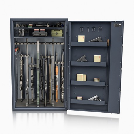 Poprzez możliwość przestawiania na wysokości półek jak i uchwytów na broń – można dowolnie spersonalizować wnętrze umożliwiając dogodne ustawienie broni o różnej wysokości.