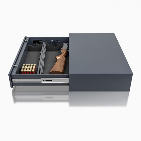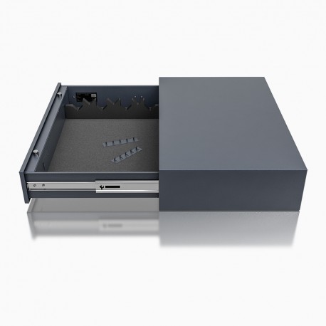 Szuflada w standardzie wyłożona jest wykładziną zabezpieczającą deponowaną broń przed porysowaniami.